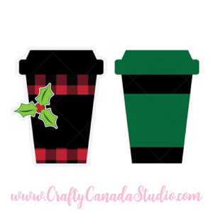 This Christmas Coffee Cup comes in SVG format, and features pretty holly leaves.  Included is are PNG files of the entire cup with the holly included, as well as just the buffalo check front, for printing and cutting.