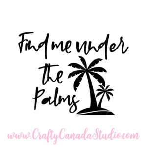 This quote, Find Me Under The Palms, comes in SVG format, and features two palm trees.