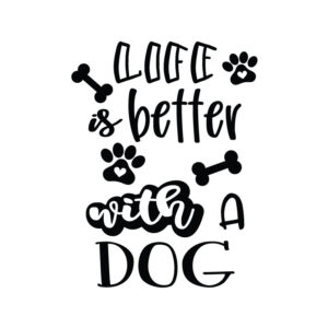 This Life Is Better With A Dog quote comes in SVG format, and features fun little dog bones and paws.