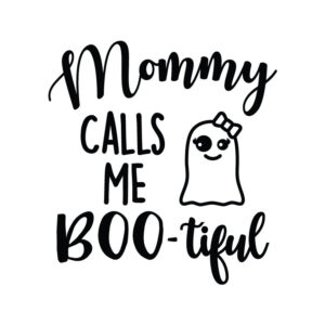 This kids Halloween quote, Mommy Calls Me Boo-tiful, comes in SVG format, and features a cute little girl ghost.