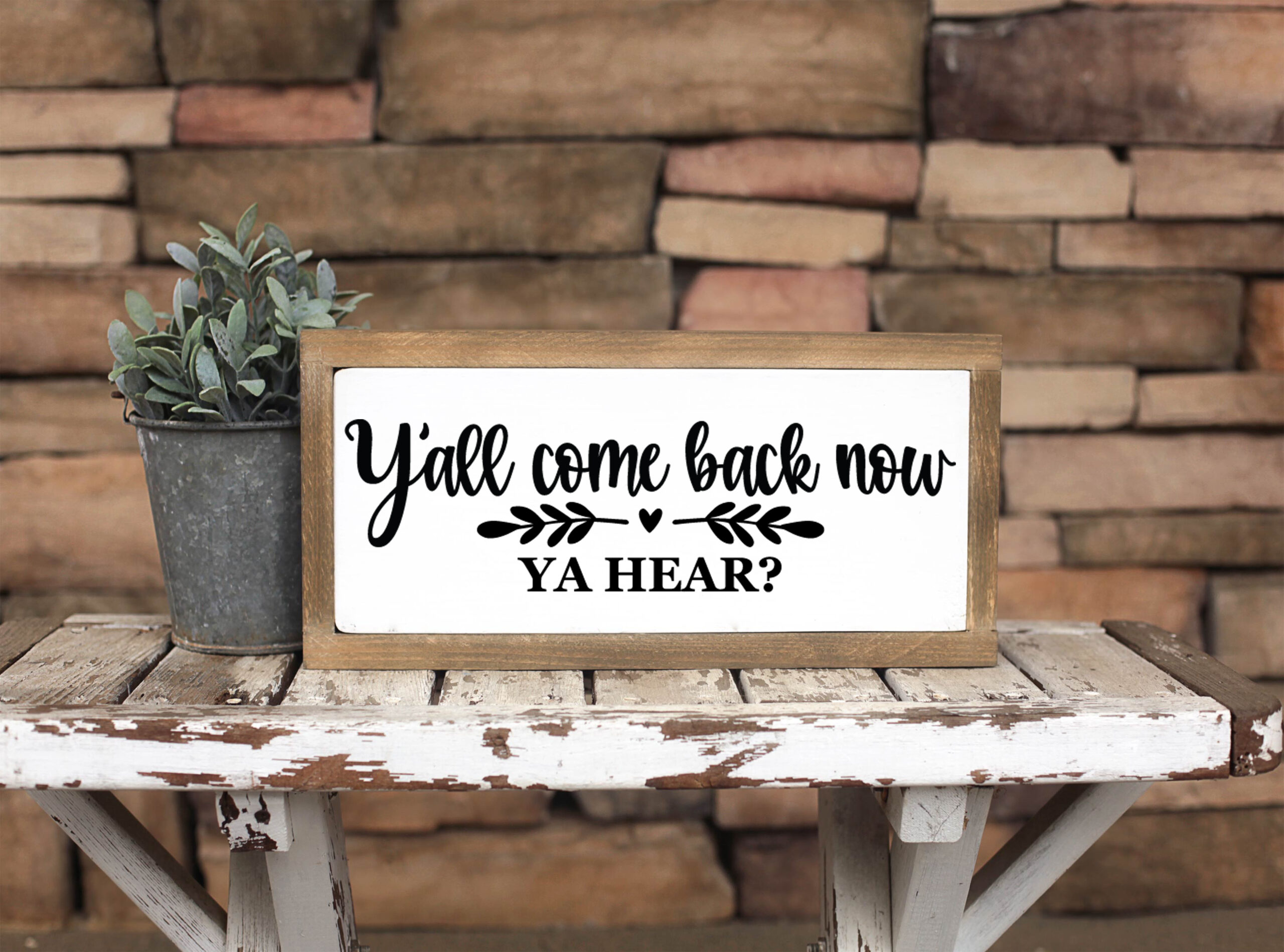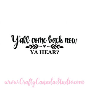 This Y’all Come Back Now Ya Hear? quote comes in SVG format, and features leaves and a heart.