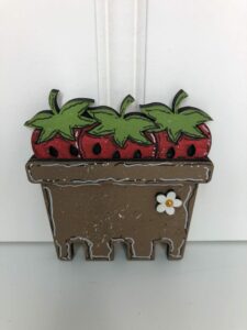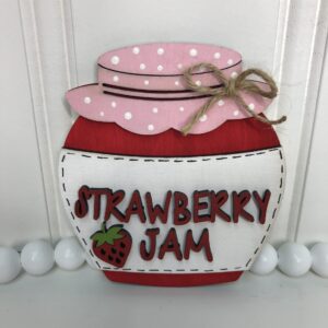 I used my X-tool laser cutting machine to cut my strawberry jam jar, ladder, basket of strawberries, rolling pin, large strawberry, and strawberry garland charm out of 1/8″ birch wood. These were fun to make because I was able to layer my pieces to give them extra dimension. I used fine tip acrylic paint markers in white and black to add the extra squiggly details around my strawberries and basket of berries. (The brand of markers I bought are by Flysea. I bought them off Amazon, and I LOVE them. They work so much better for me than the Sharpie ones I’ve bought in the past).